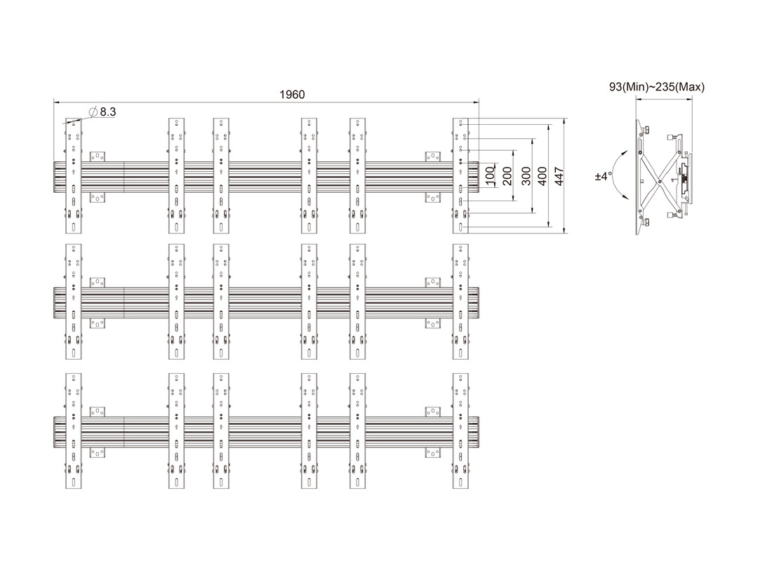 Halterung 9 x 32"-55", VESA 100x100 - 400x400 Stahl/Aluminium, schwarz, max 9 x 30kg