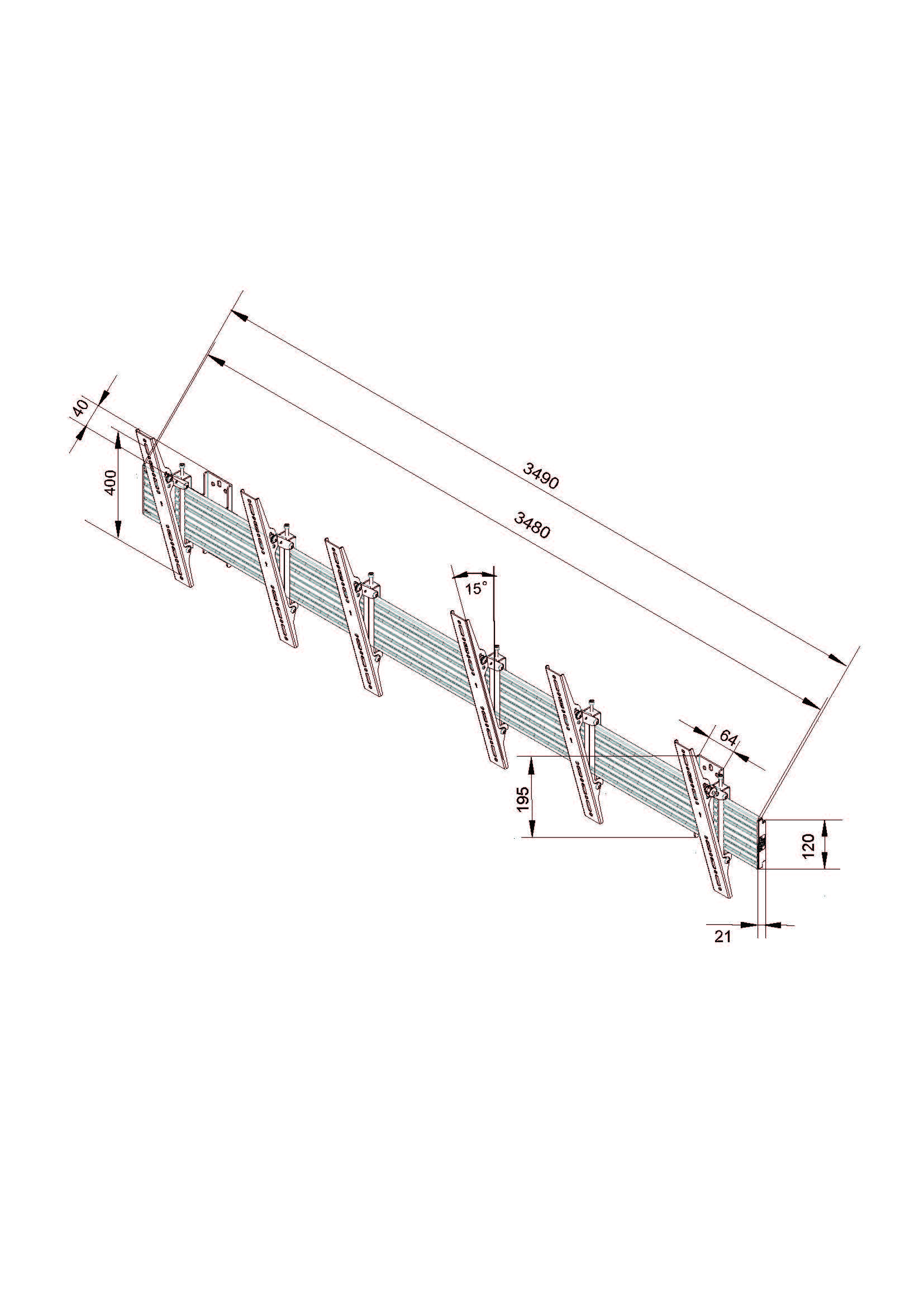 Wandhalter triple, neigbar bis 15°, 40"-65", silber VESA 100-600x400, Stahl/Aluminium, max 3x30kg