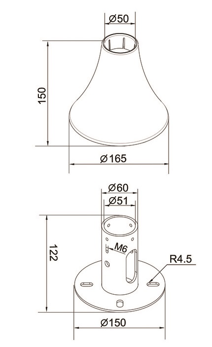 Boden-Wand Platte zu Boden-Decken System schwarz, Metall-Plastik, max. 90kg 165x165x150mm, inkl.... mehr