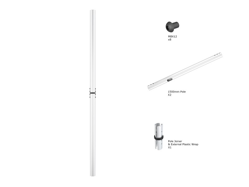 Verlängerungsrohr 3.0m, Metall, zu pro System chrom, max 30 Kg. p.Monitor, 3000x50x50mm mehr