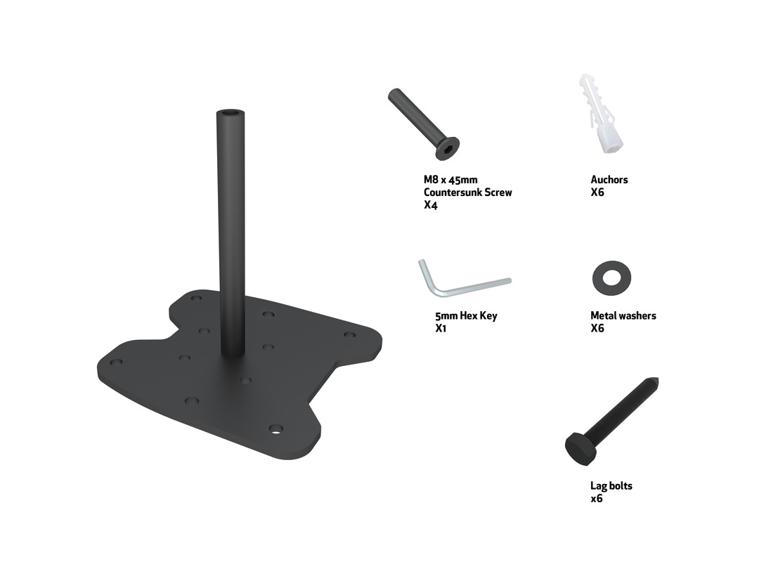Fixierbare Bodenplatte , schwarz, 192x180mm max 90 Kg, Metall, Bodenplatte mit Rohr