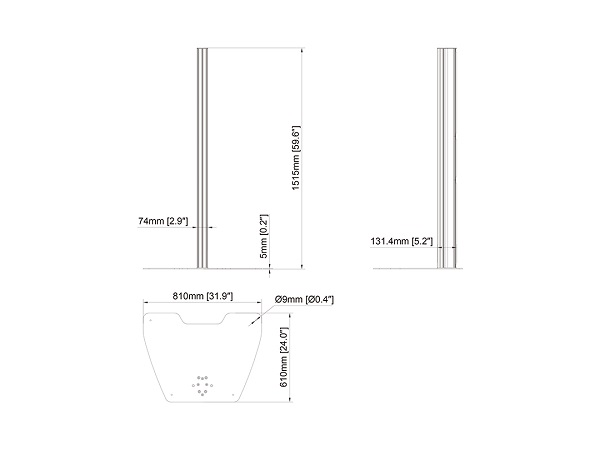 Bodenplatte mit Säule, zu Pro Serie, Alu, schwarz Masse 830x1570x630mm, Tragkraft 30 kg
