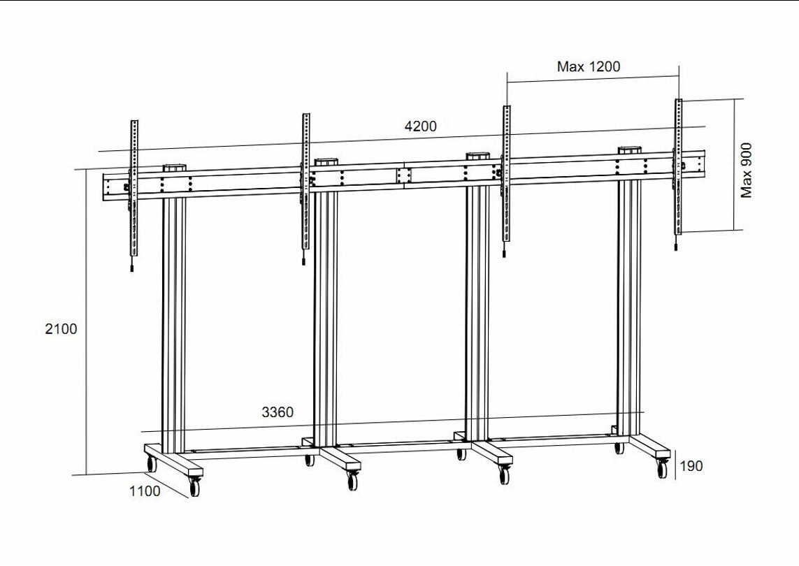 TV Multistandfuss 110" Side by Side, schwarz Metall, VESA 1200x900, max. 250 kg (2x125kg)