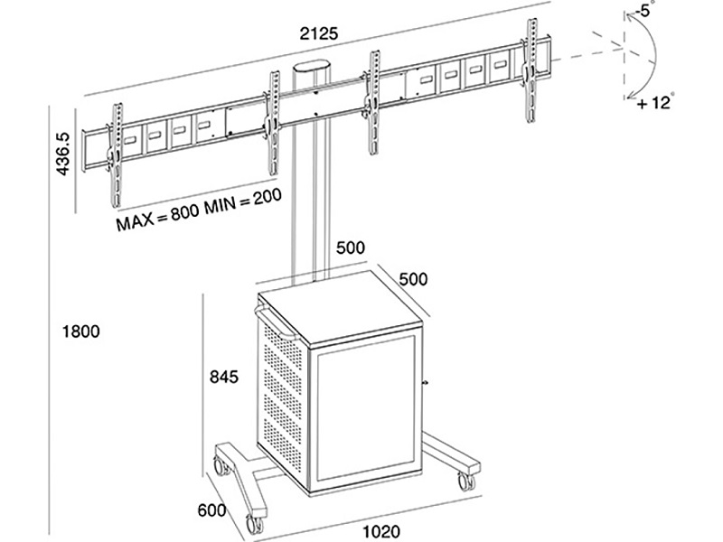 TV Ständer Dual, 2x60", Metall, silber VESA 800x400, max. 80 kg, Höhe 1800 mm