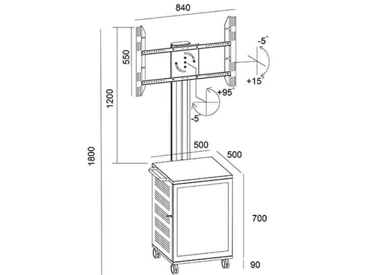fahrbar, neigbar 15°, Portrait oder Landscape