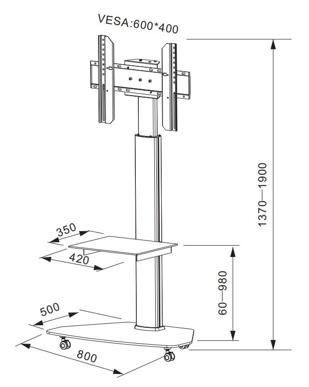 1370-1900 mm, höhenverstellbar, Montagekit