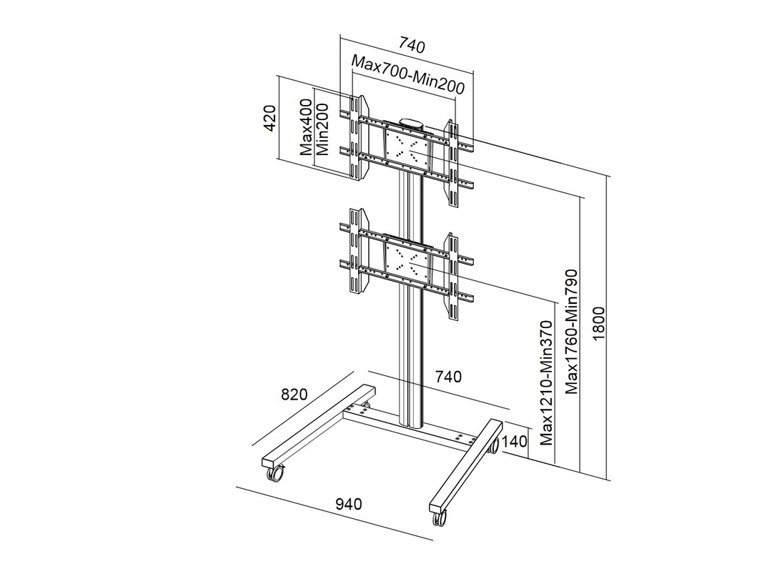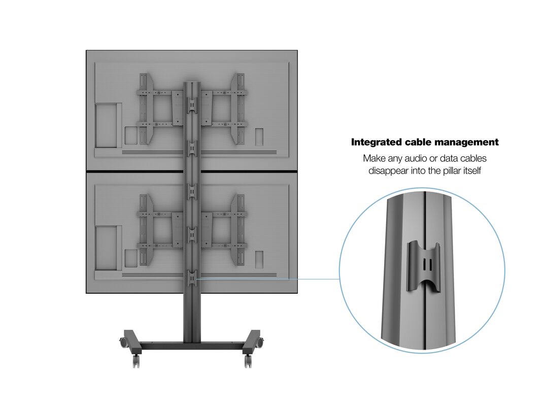 TV Ständer Dual vertikal - 55", Metall, schwarz VESA 700x400, max. 2x30 kg, Höhe 1800mm,