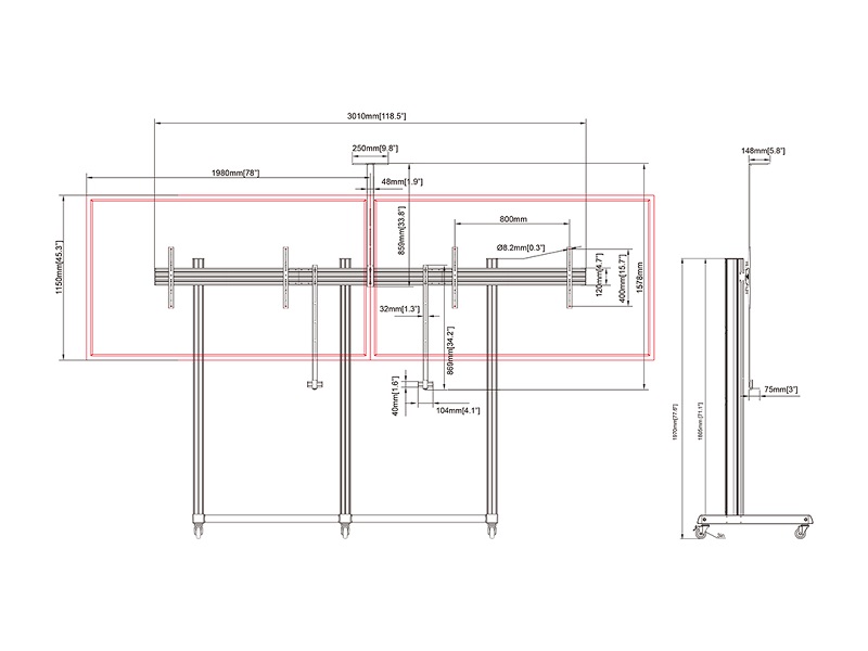 TV Ständer 2x75-90", Metall, Alu, schwarz, VESA 100x100-800x400, max 2x65kg