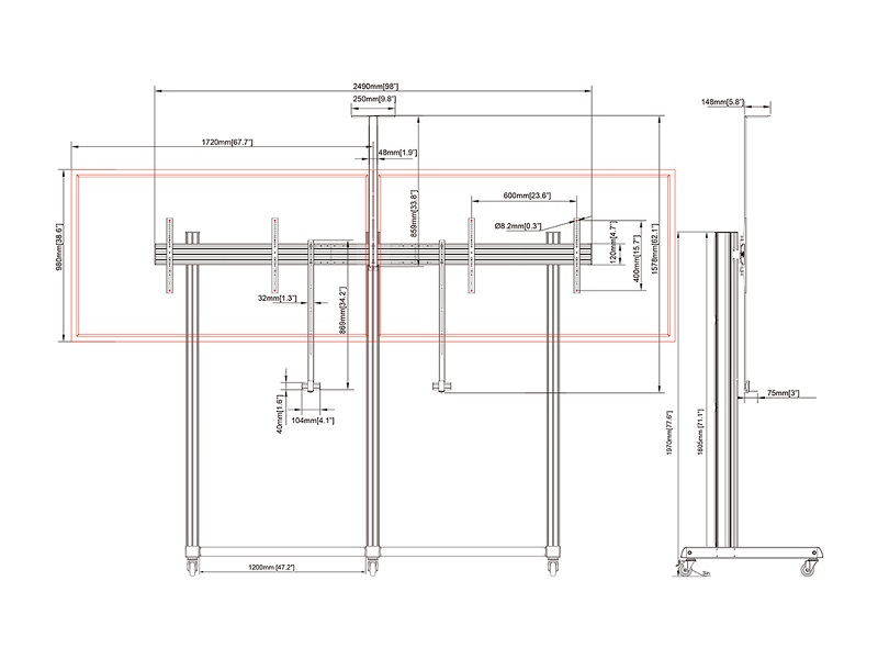 side by side , fahrbar, Höhe 1972 mm, inklusive