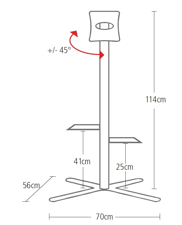 Rotation +/-45°, integrierte Kabelführung, Rohr