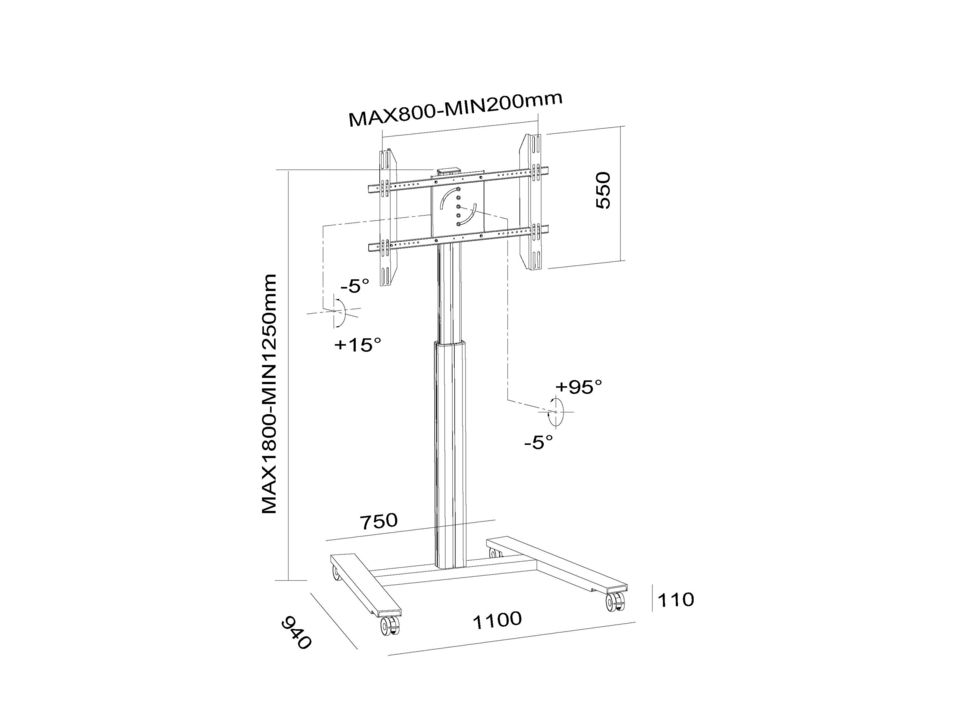 Standfuss elektr, -60", max 40 kg, silber VESA 800x400mm, Aluminium-Metall