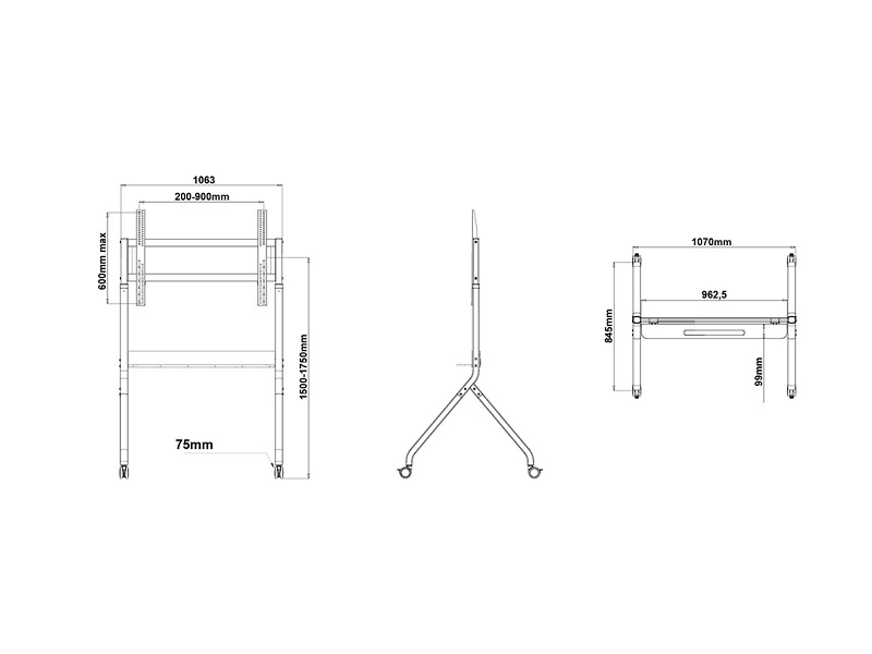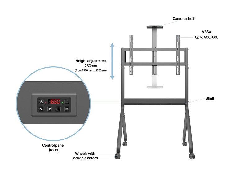 Standfuss elektr. 55-86", max 90 kg, schwarz AV Konsole, Kamerahalter, VESA max 900x600