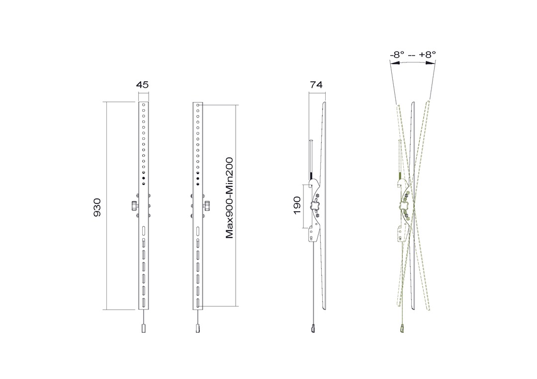 bis 8°+/-, Stahl, Set bestehend aus 2 Streben