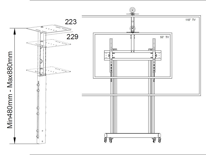 Kamerahalter 65-110",schwarz, Metall, max 10kg Masse BxTxH 229x223x346mm