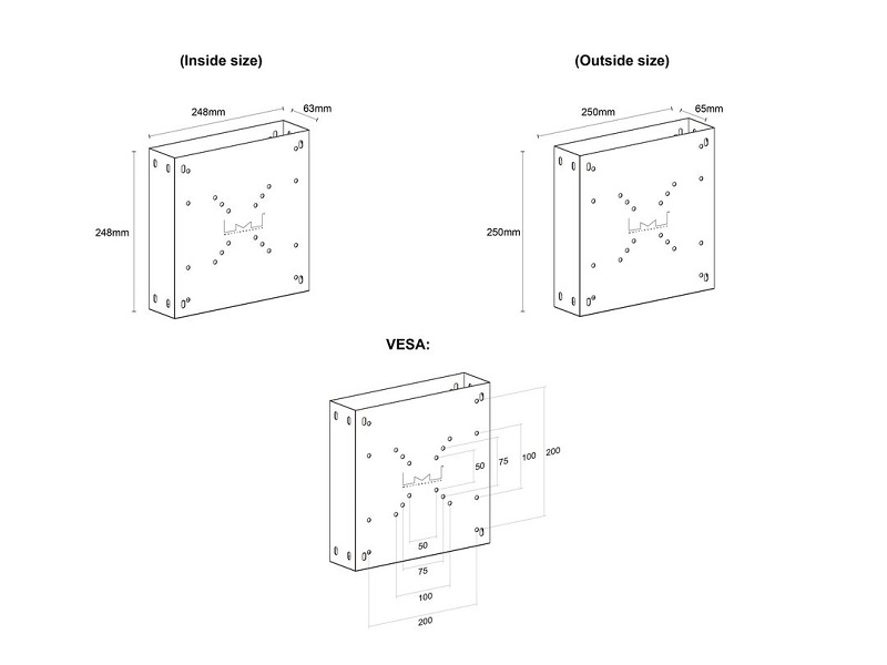 Aussenmasse: 248x248x63 mm, Innenmasse: