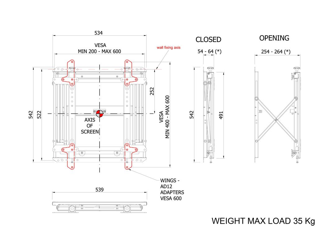 Video Wall Halterung, 40"-55", schwarz max 35kg VESA 600x400, Metall/Aluminium,Feineinstellung
