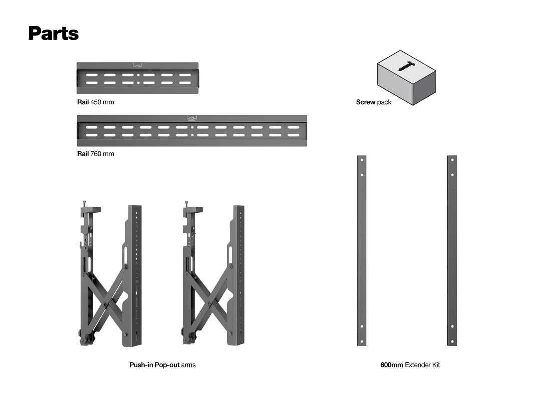fix mit Ausziehfunktion, ideal für Portrait 400x600 Wandabstand 80/215 mm, Push out funktion um