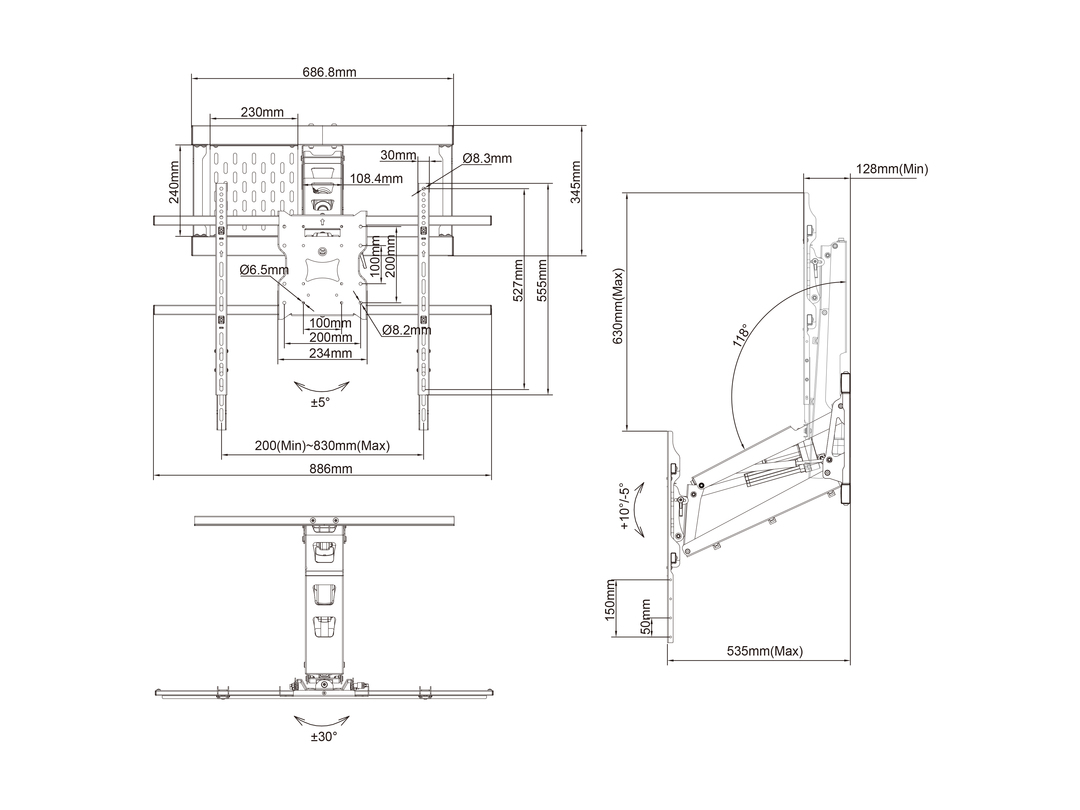 1 Arm, Wandabstand 128-535mm, IR-