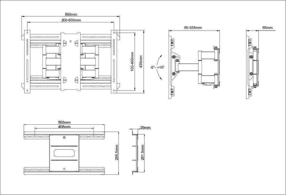 4 Gelenke, Wandabstand 85-355 mm, inkl.