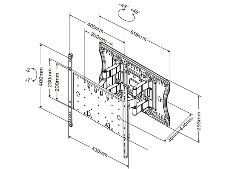 Wandhalterung 32- 65", Metall, schwarz, Slimline bis VESA 400x400, max. 40 kg, Tilt +/-7°