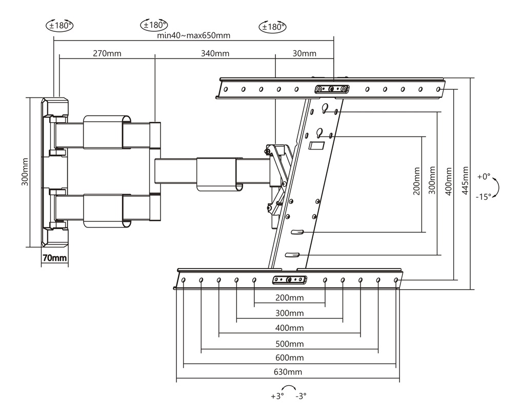 4 Gelenke 2 Arm, Wandabstand max 50 mm,