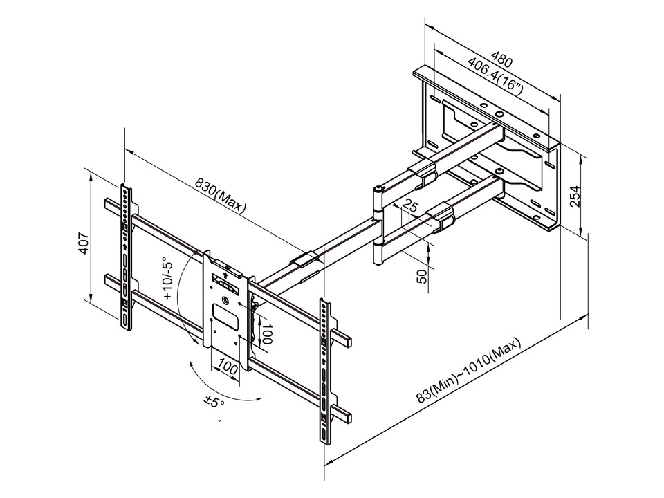 Wandabstand 83mm-1010mm, Neigung -5°/+10°,