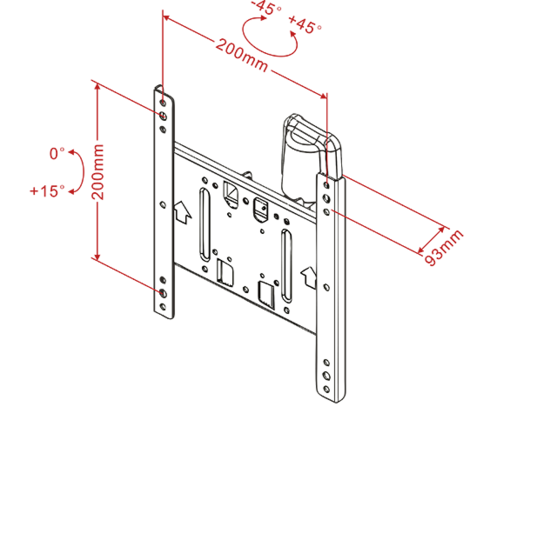 Wandhalter 15-32", Metall, schwarz, max 25 kg VESA 75x75 - 200x200, neigbar 15°