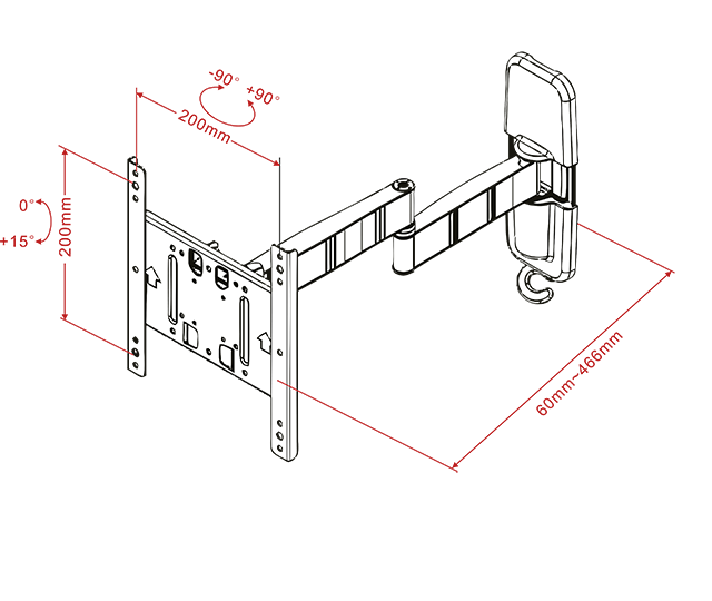 Wandhalter 15-32", schwarz, Tragkraft 15 kg VESA 75x75-200x200, Metall, neigbar 15°