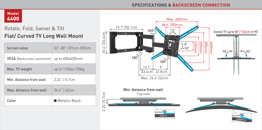 geeignet für Curved und Flat TVs, 4 Gelenke,