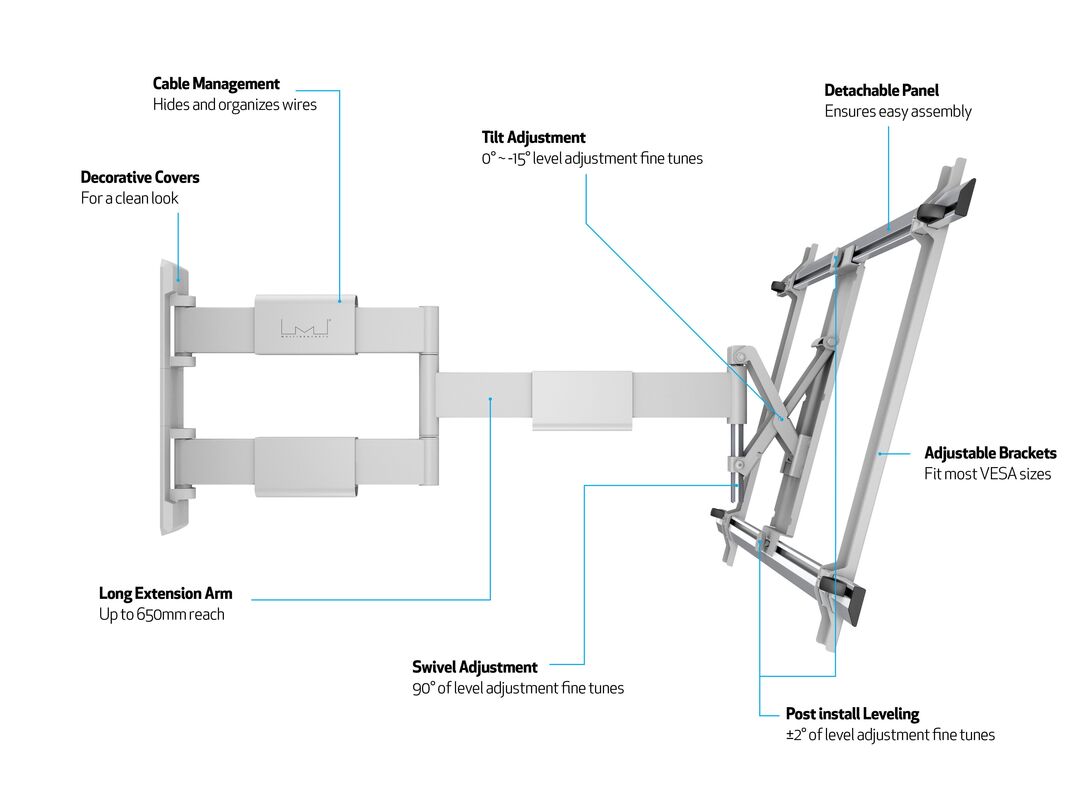 schwenkbar, Screenleveling 2°+/-, inkl. Montage-