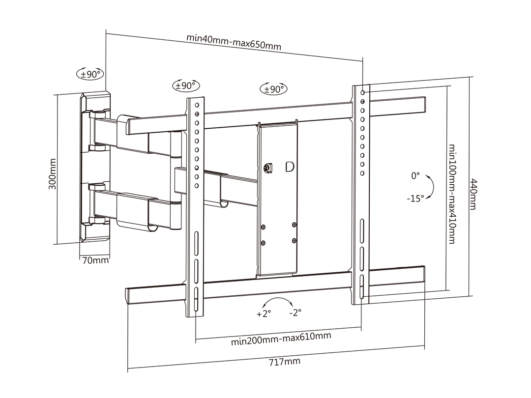 Wandabstand 40-650mm,90° links - 90° rechts-