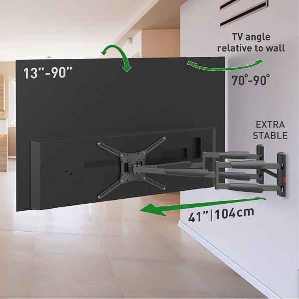 TV-Wandhalterung 13-90", Metall, schwarz Tragkraft 60 kg, VESA 75x75-600x400