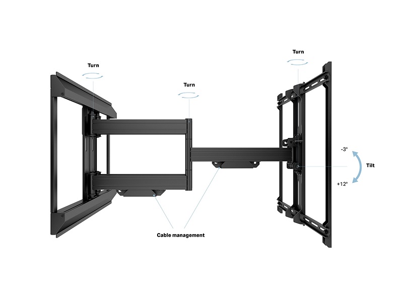 Wandhalter 42-100", Metall, schwarz, max 70kg VESA 200x100-600x400, neigbar - 3°bis+ 12°