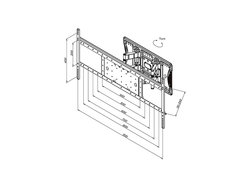 Wandhalter 40 -100", Metall, schwarz, neigbar 7° VESA 100x100-900x400, Tragkraft 125 kg